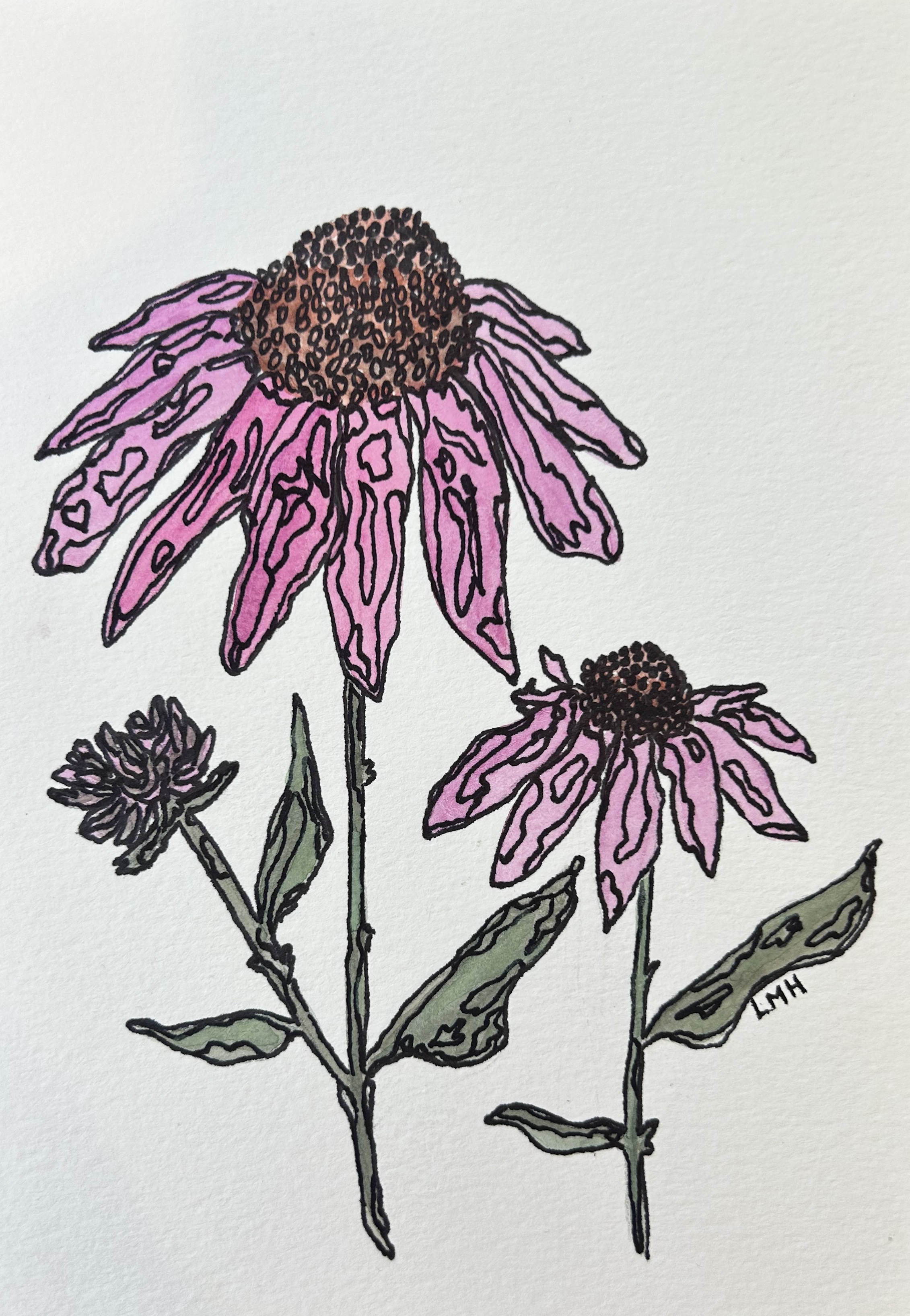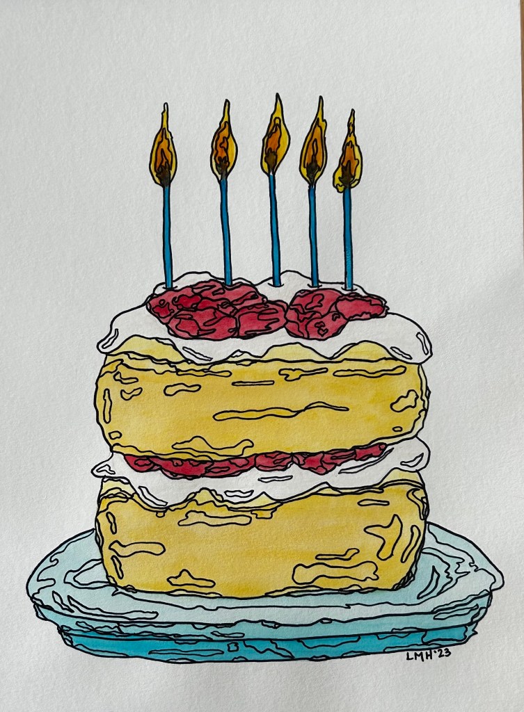 by LMH was born on a day when I needed a few days away from writing. Painting became the perfect outlet. It was a way to clear my mind while still staying creative. What began as a personal reset quickly grew. I entered a neighborhood art show, then started creating cards for family and friends. In those early painting sessions, I noticed all the imperfections, and instead of hiding them, I chose to embrace them. I began outlining the flaws with squiggly lines, and that distinctive style eventually became my signature. You can explore some of my artwork in a virtual gallery created by my brother, Brad Hamilton, through his company Creative Spins.